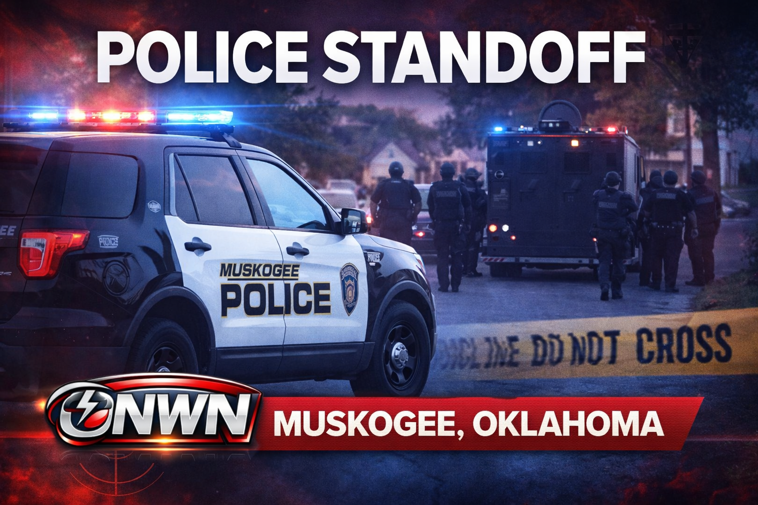 Due to the severity of the situation, SWAT teams were called to the scene, including the Muskogee Nation Lighthorse Police SWAT team. Authorities established a perimeter around the residence, evacuated nearby homes as a precaution, and positioned tactical units, including snipers. A drone was also deployed as part of the operation.