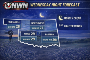 Winds will gradually weaken this evening as skies clear. Overnight lows will fall into the mid-20s to lower 30s statewide, with colder readings across the Panhandle and northeast Oklahoma.